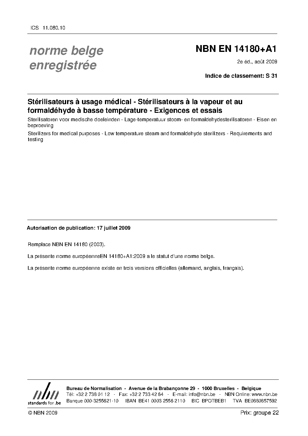 | Publisher | Bureau de Normalisation Belge (NBN) |
