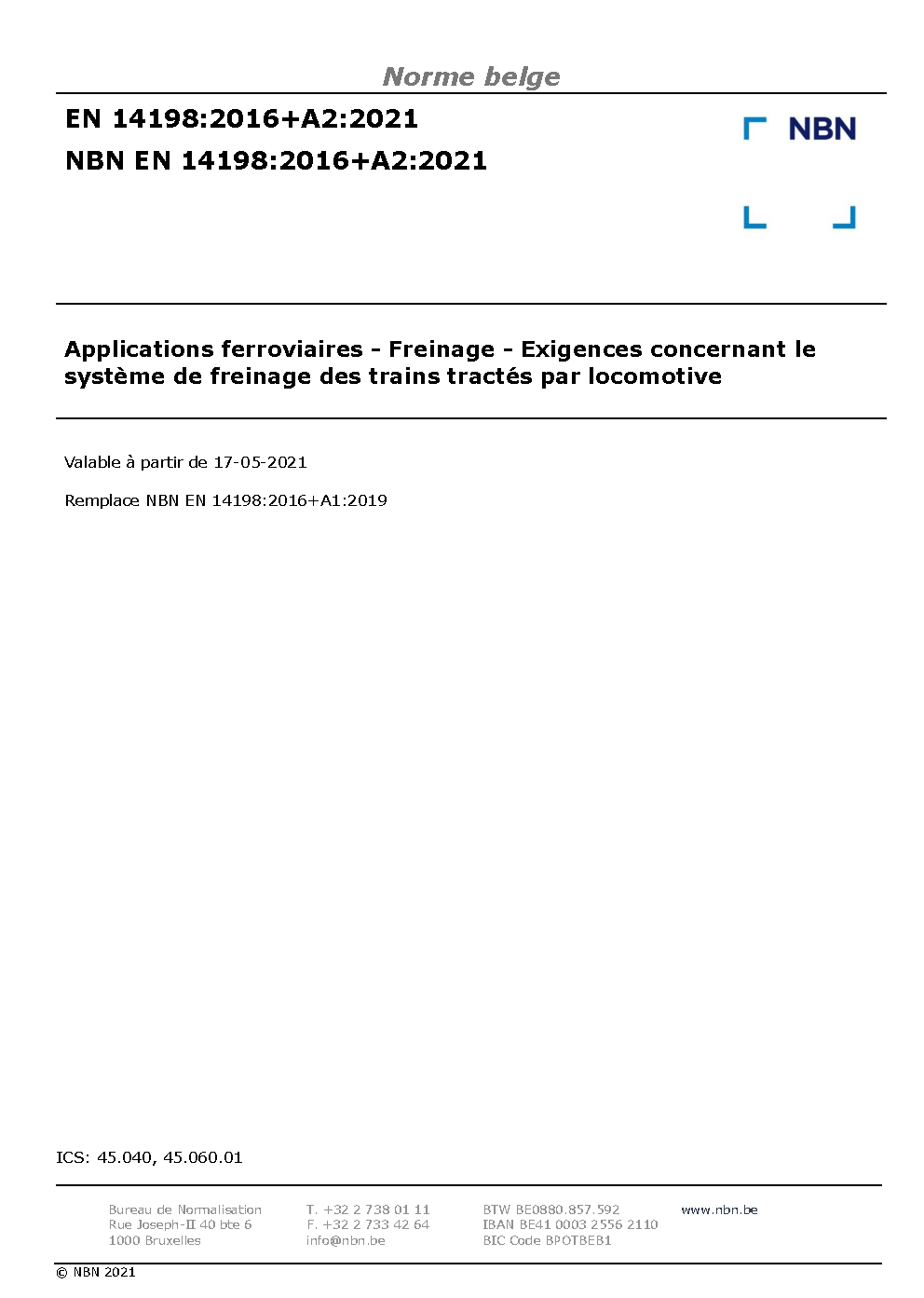 | Publisher | Bureau de Normalisation Belge (NBN) |