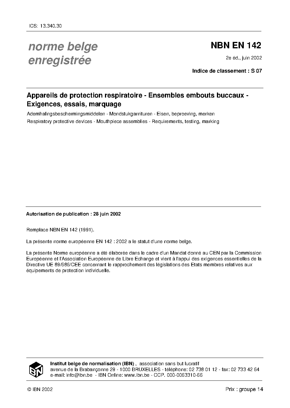 NBN EN 142:2002