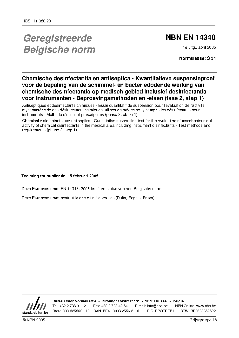 | Publisher | Bureau de Normalisation Belge (NBN) |