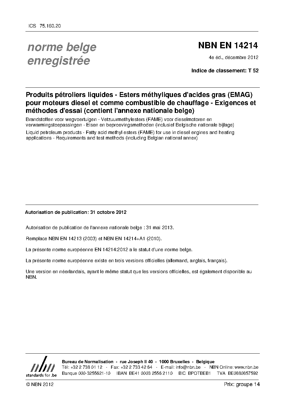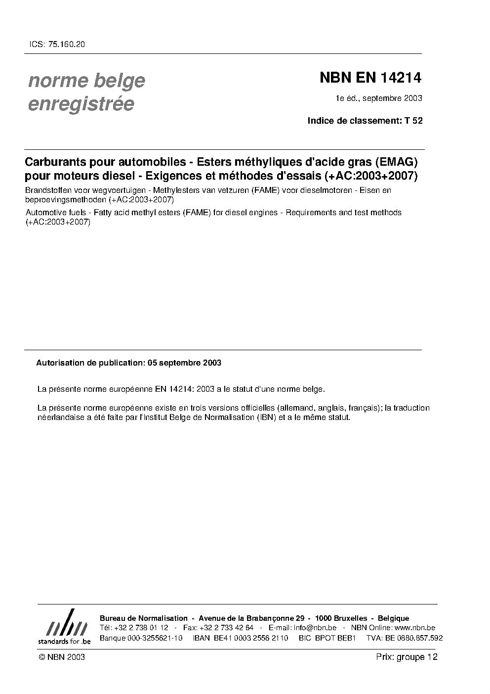 | Publisher | Bureau de Normalisation Belge (NBN) |