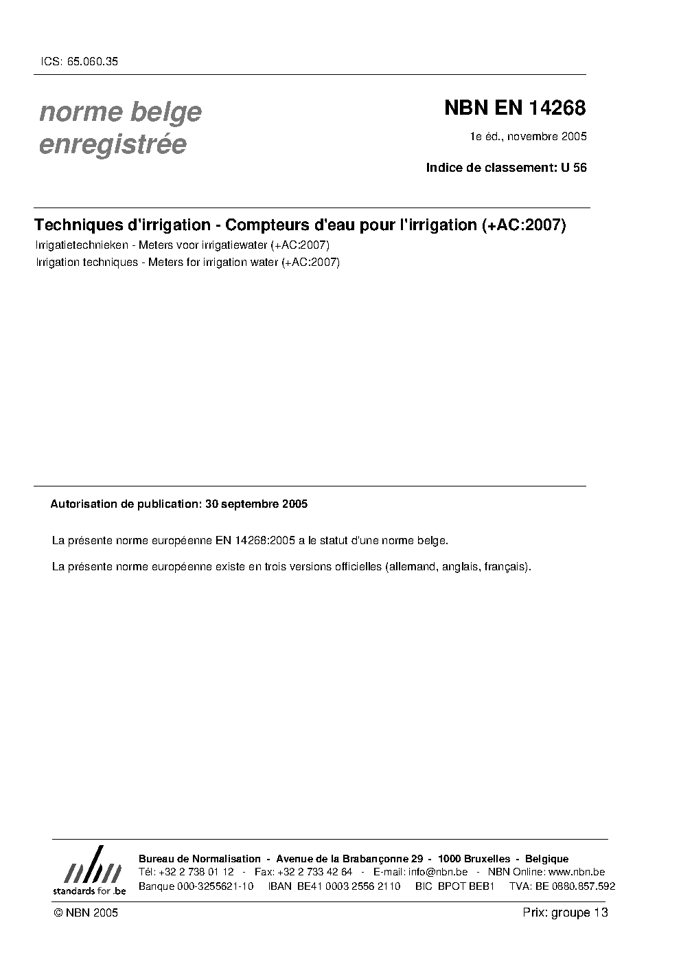 | Publisher | Bureau de Normalisation Belge (NBN) |