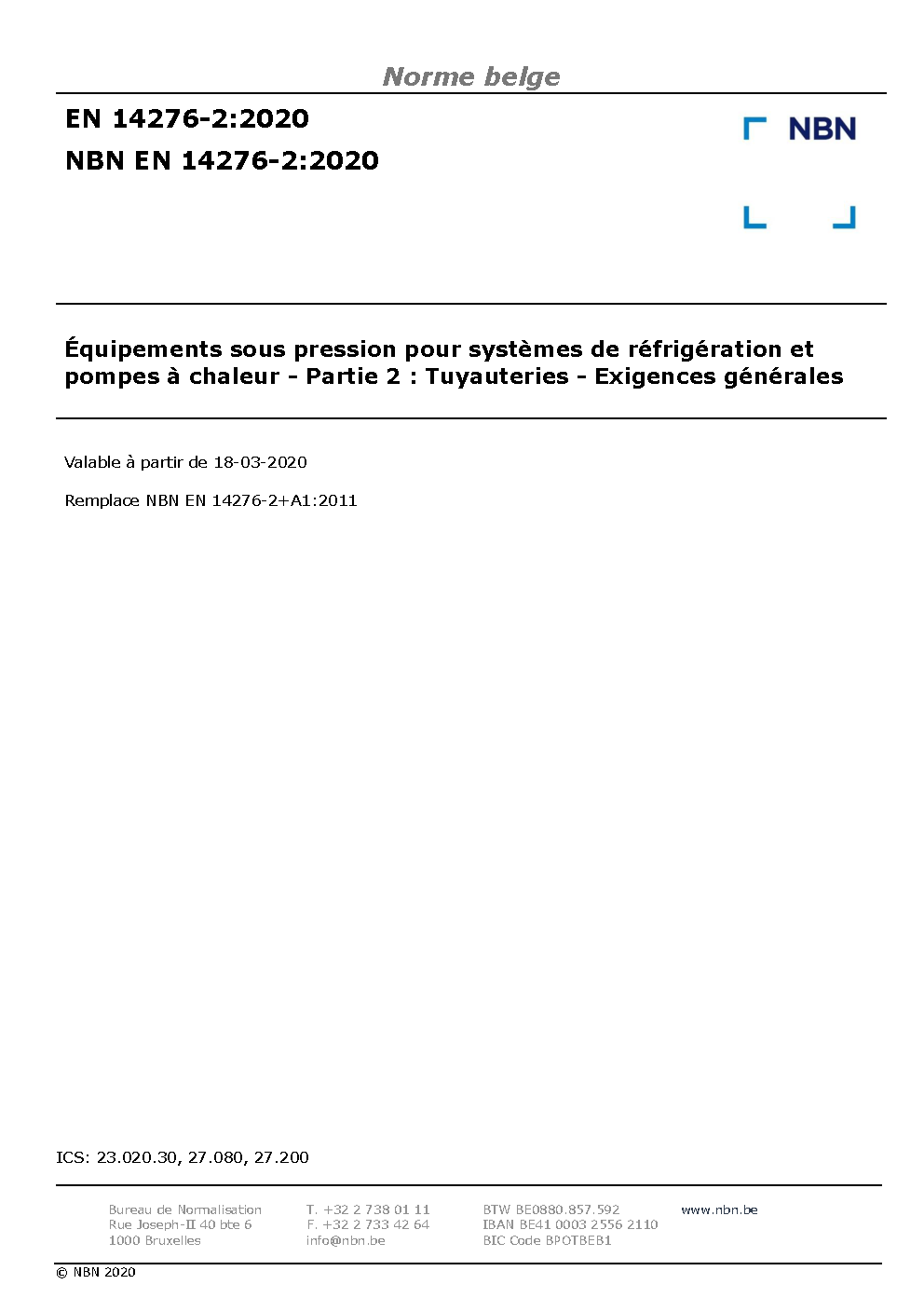 1.3 This European Standard applies to the selection, application and installation of safety accessories intended to protect the piping during the various phases of the refrigeration cycle.