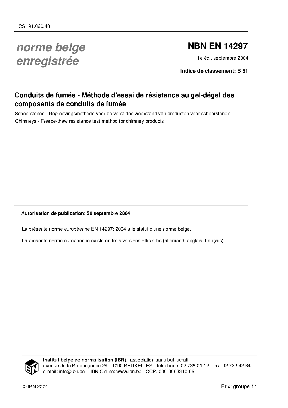 | Publisher | Bureau de Normalisation Belge (NBN) |