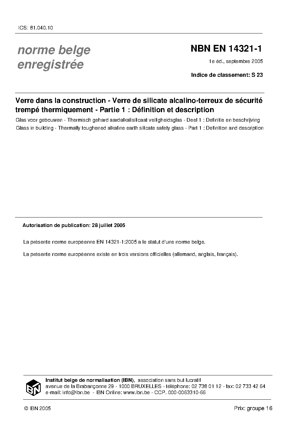 | Publisher | Bureau de Normalisation Belge (NBN) |