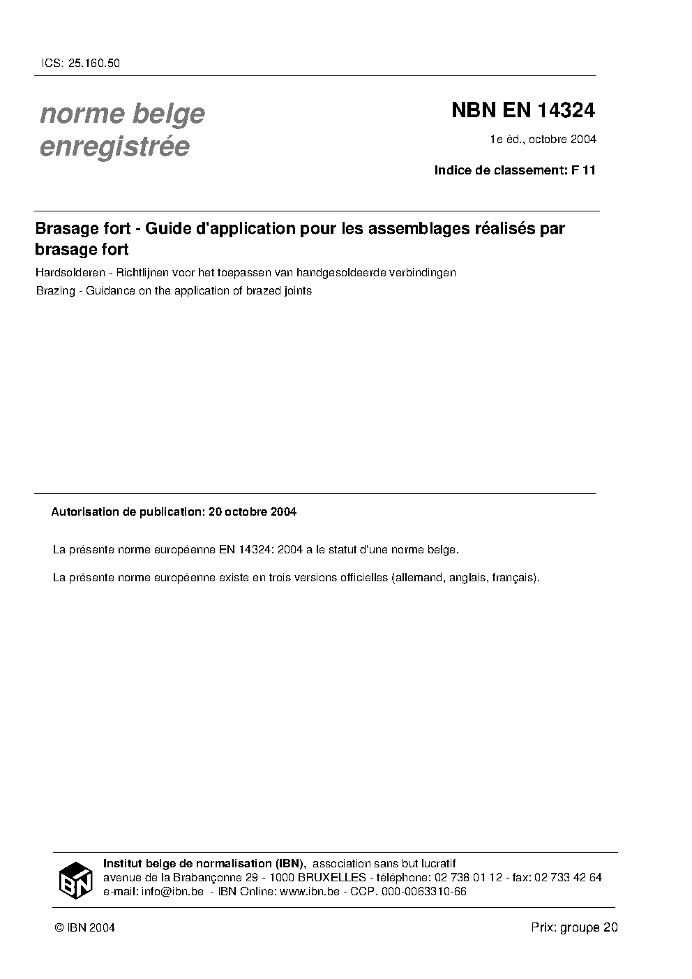 | Publisher | Bureau de Normalisation Belge (NBN) |