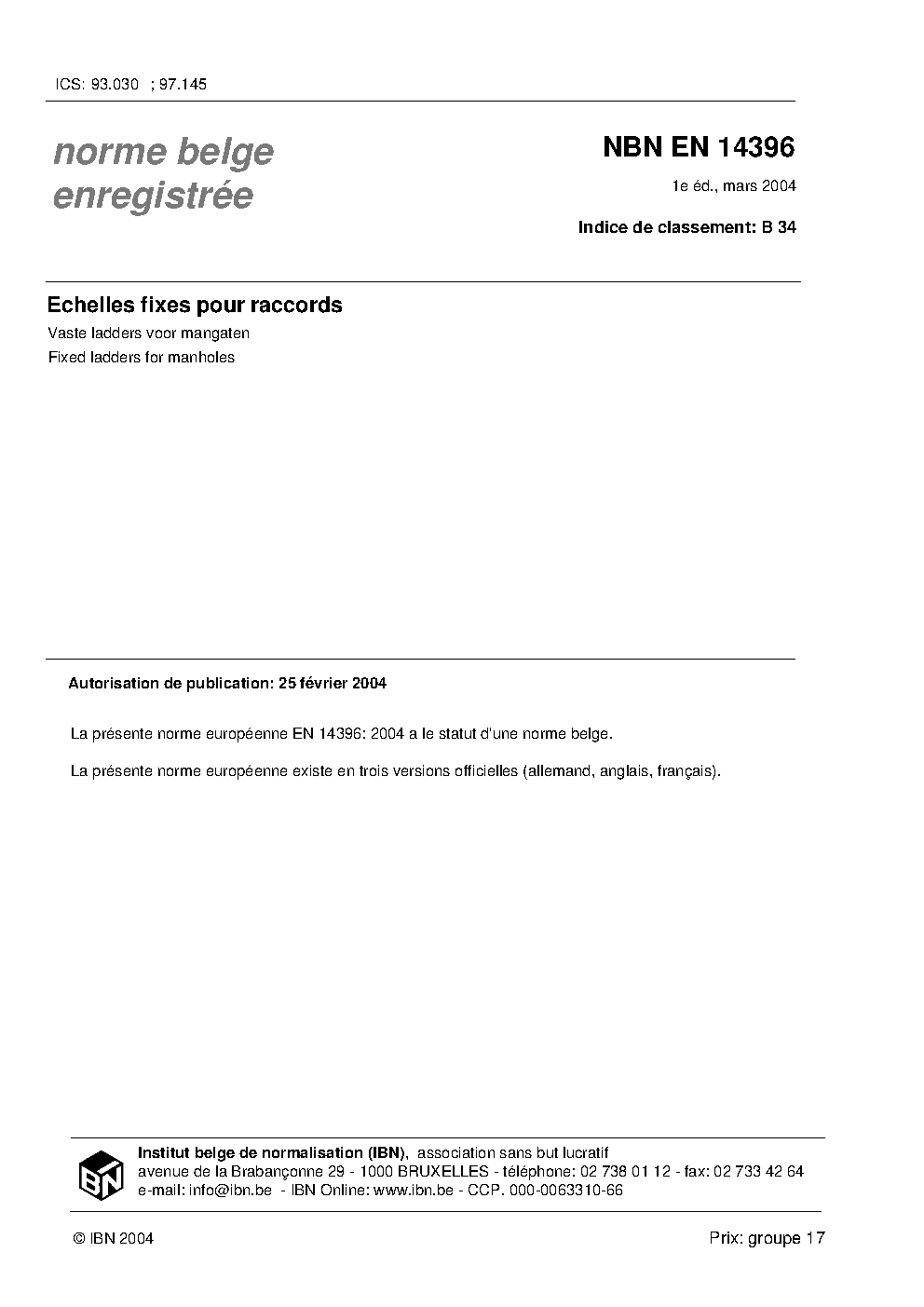 | Publisher | Bureau de Normalisation Belge (NBN) |