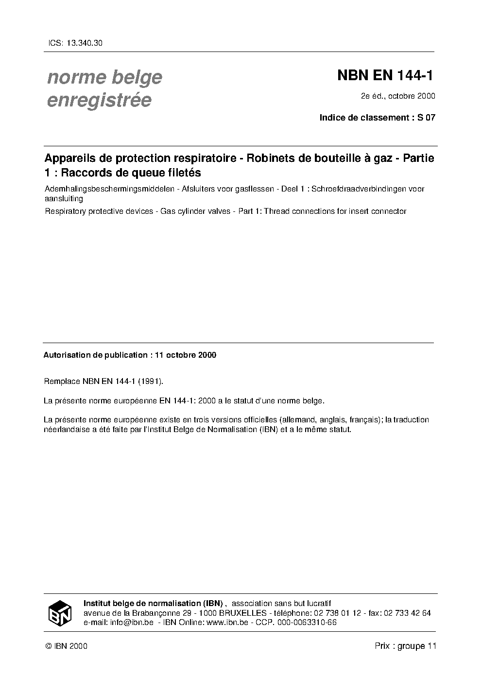 NBN EN 144-1:2000