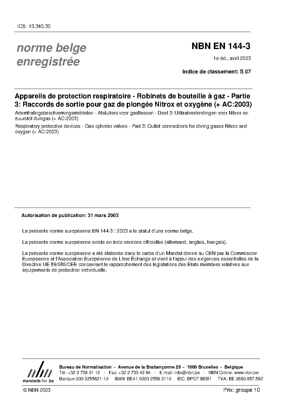 NBN EN 144-3:2003