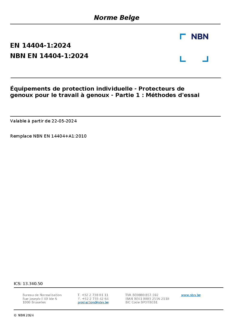 | Publisher | Bureau de Normalisation Belge (NBN) |