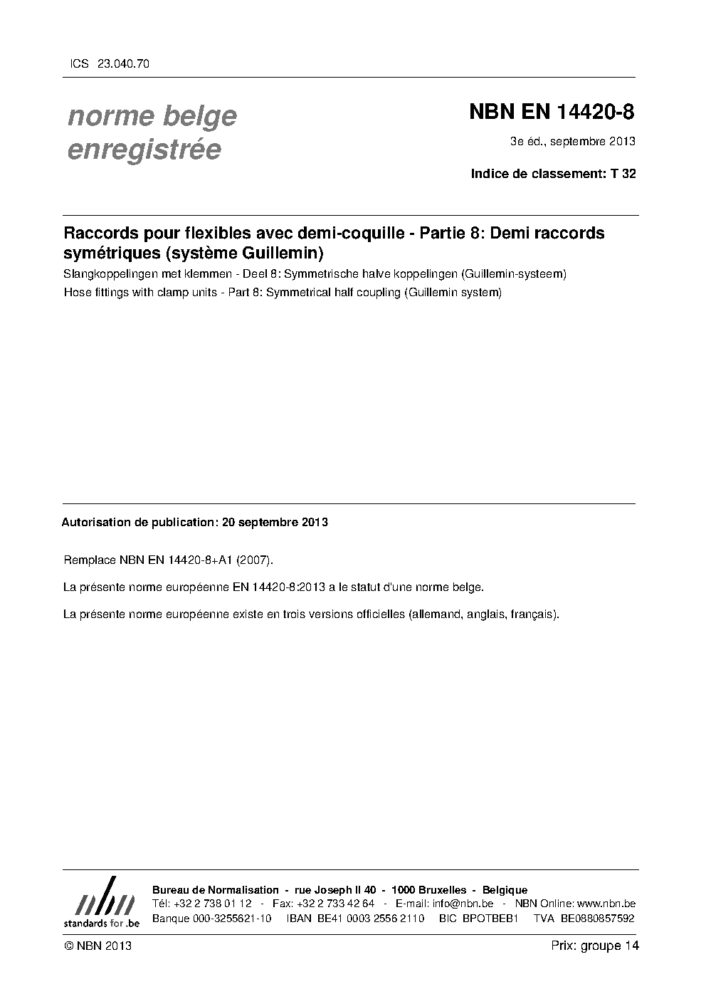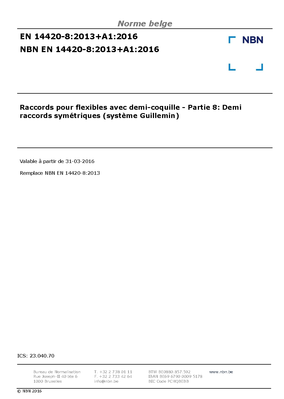 | Publisher | Bureau de Normalisation Belge (NBN) |