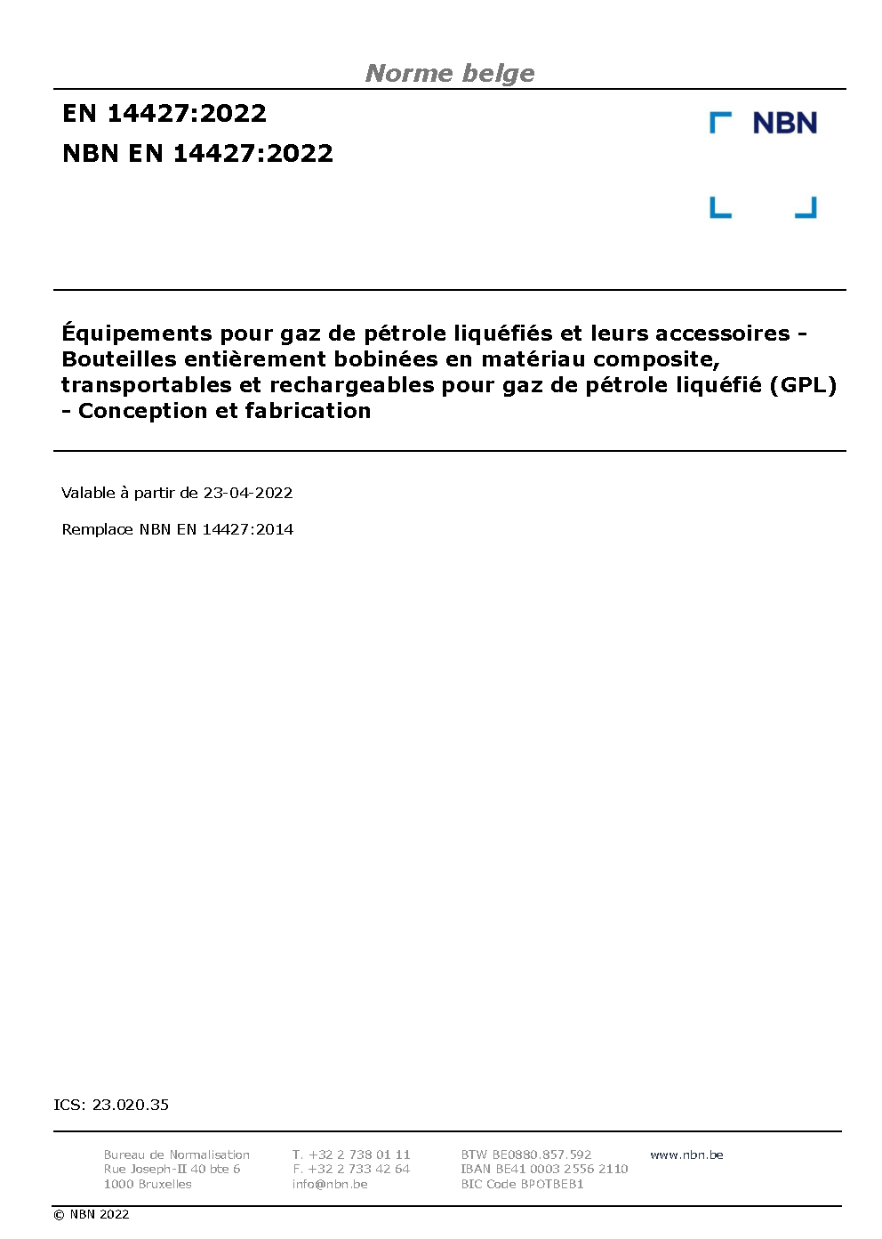 - specifies minimum requirements for materials, design, construction, prototype testing and routine manufacturing inspections of fully wrapped composite cylinders with a water capacity from 0,5 litre up to and including 150 litres for liquefied petroleum gases (LPG) exposed to ambient temperatures, with a test pressure of at least 30 bar;