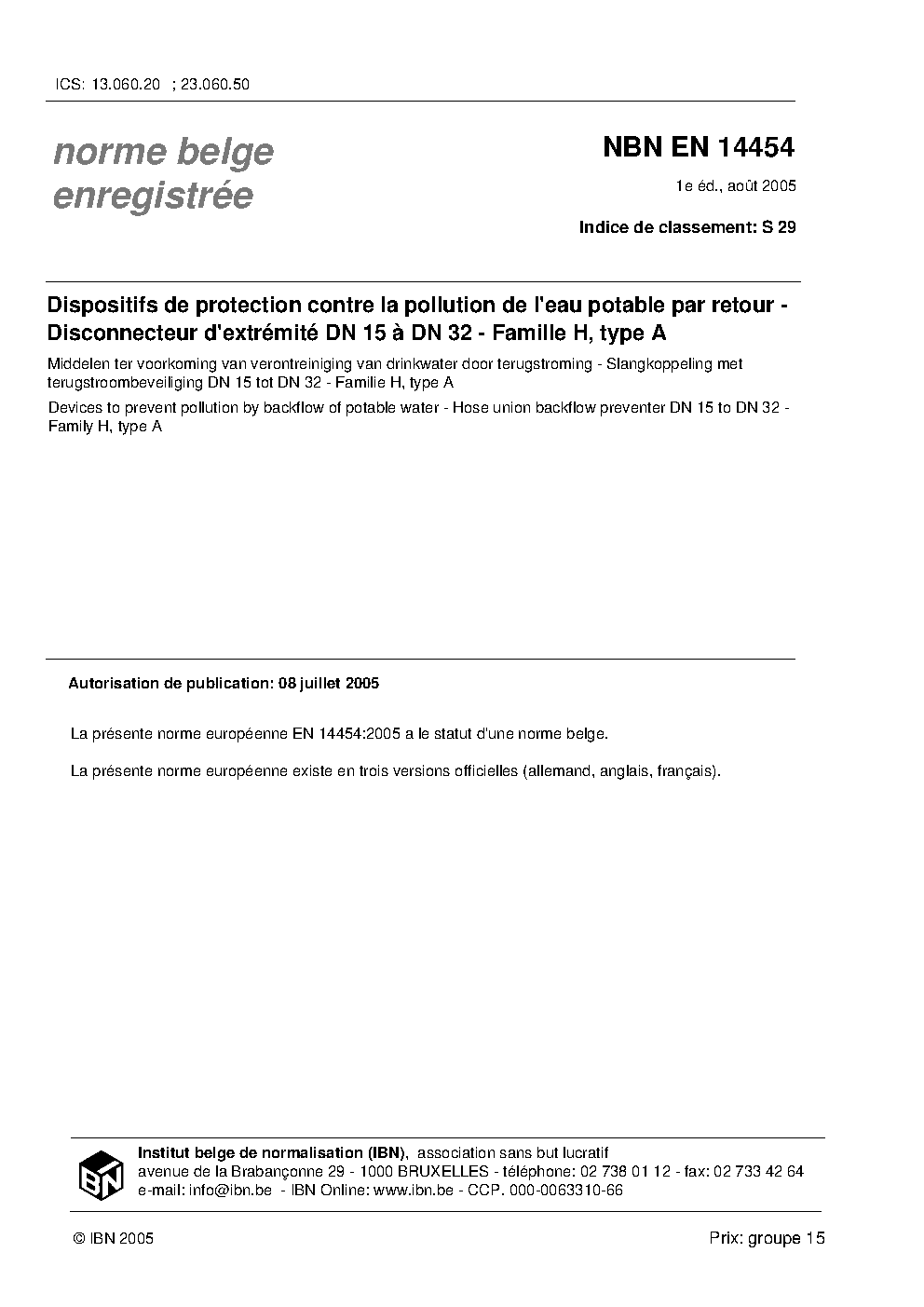 | Publisher | Bureau de Normalisation Belge (NBN) |