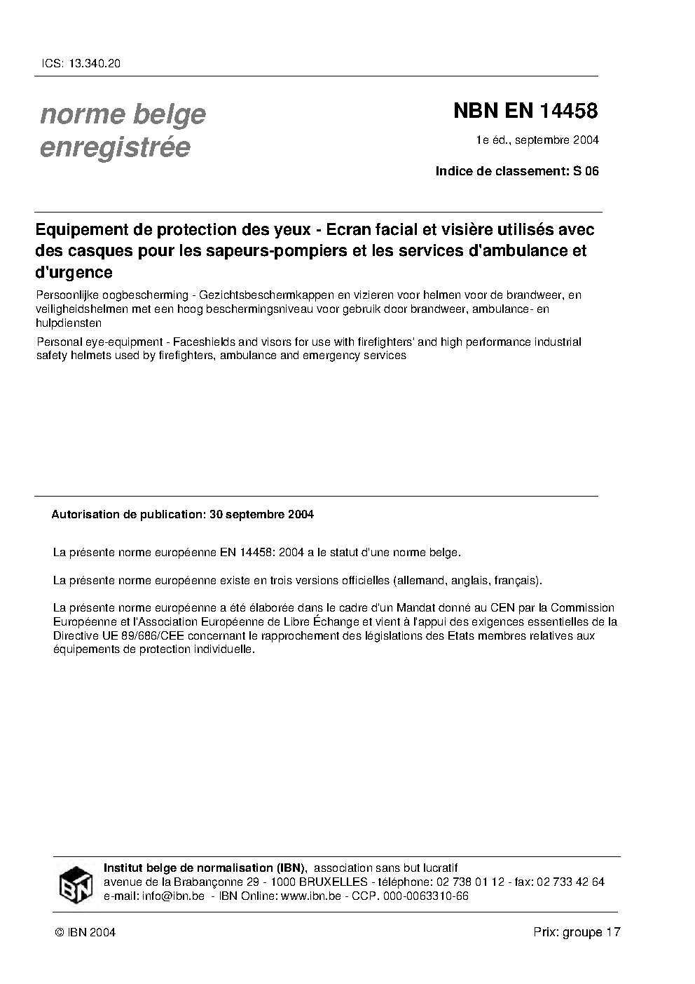 | Publisher | Bureau de Normalisation Belge (NBN) |