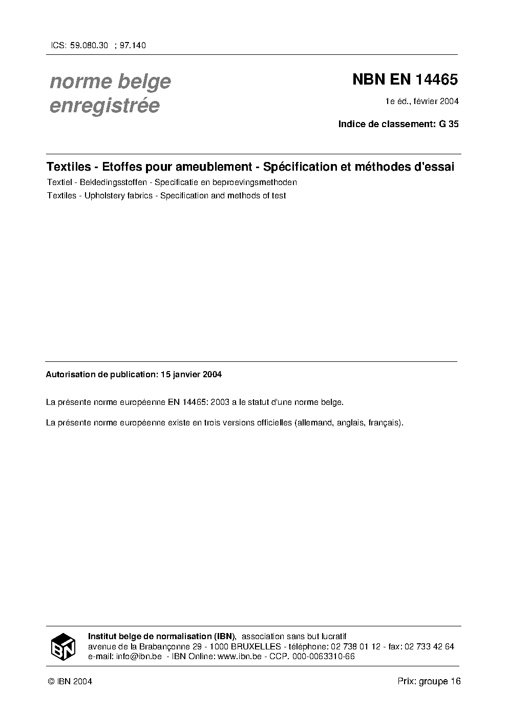 | Publisher | Bureau de Normalisation Belge (NBN) |