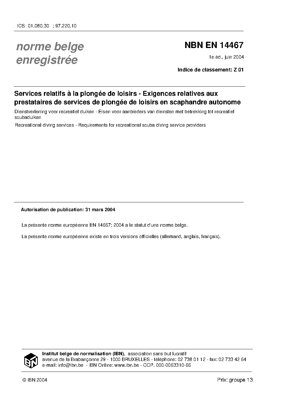 | Publisher | Bureau de Normalisation Belge (NBN) |