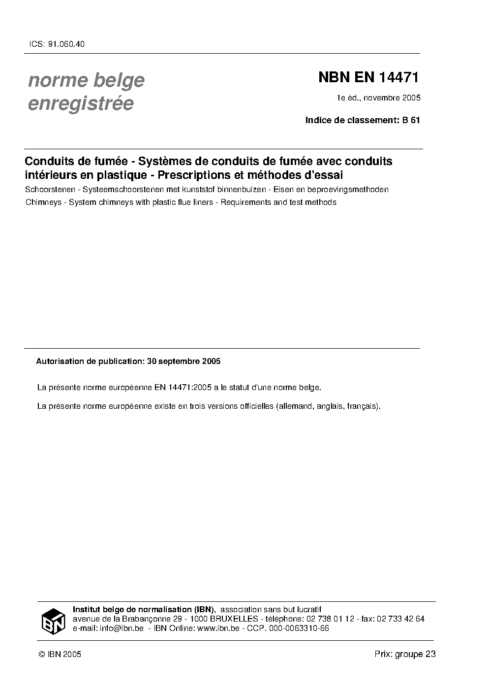| Publisher | Bureau de Normalisation Belge (NBN) |