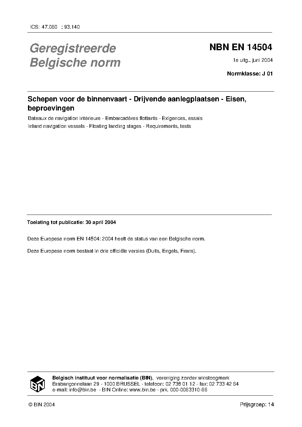 | Publisher | Bureau de Normalisation Belge (NBN) |