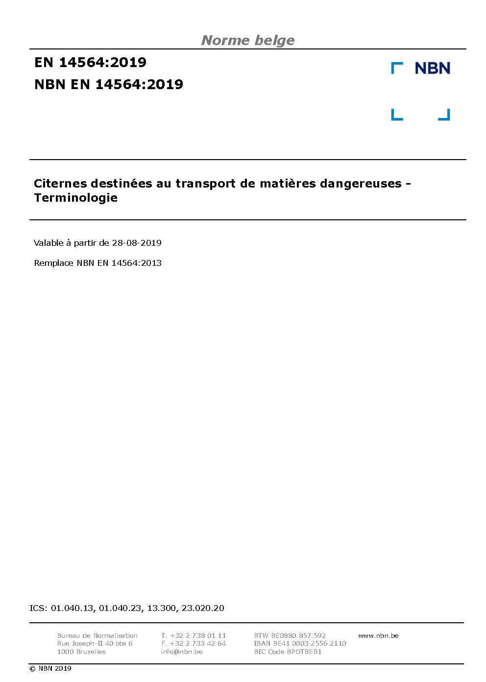 | Publisher | Bureau de Normalisation Belge (NBN) |