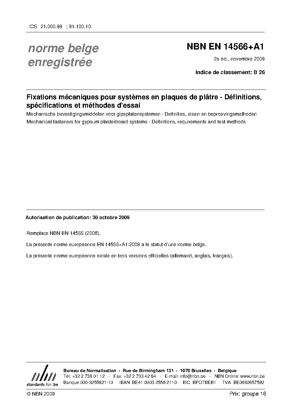 | Publisher | Bureau de Normalisation Belge (NBN) |