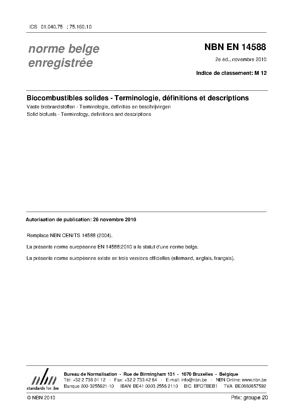 | Publisher | Bureau de Normalisation Belge (NBN) |
