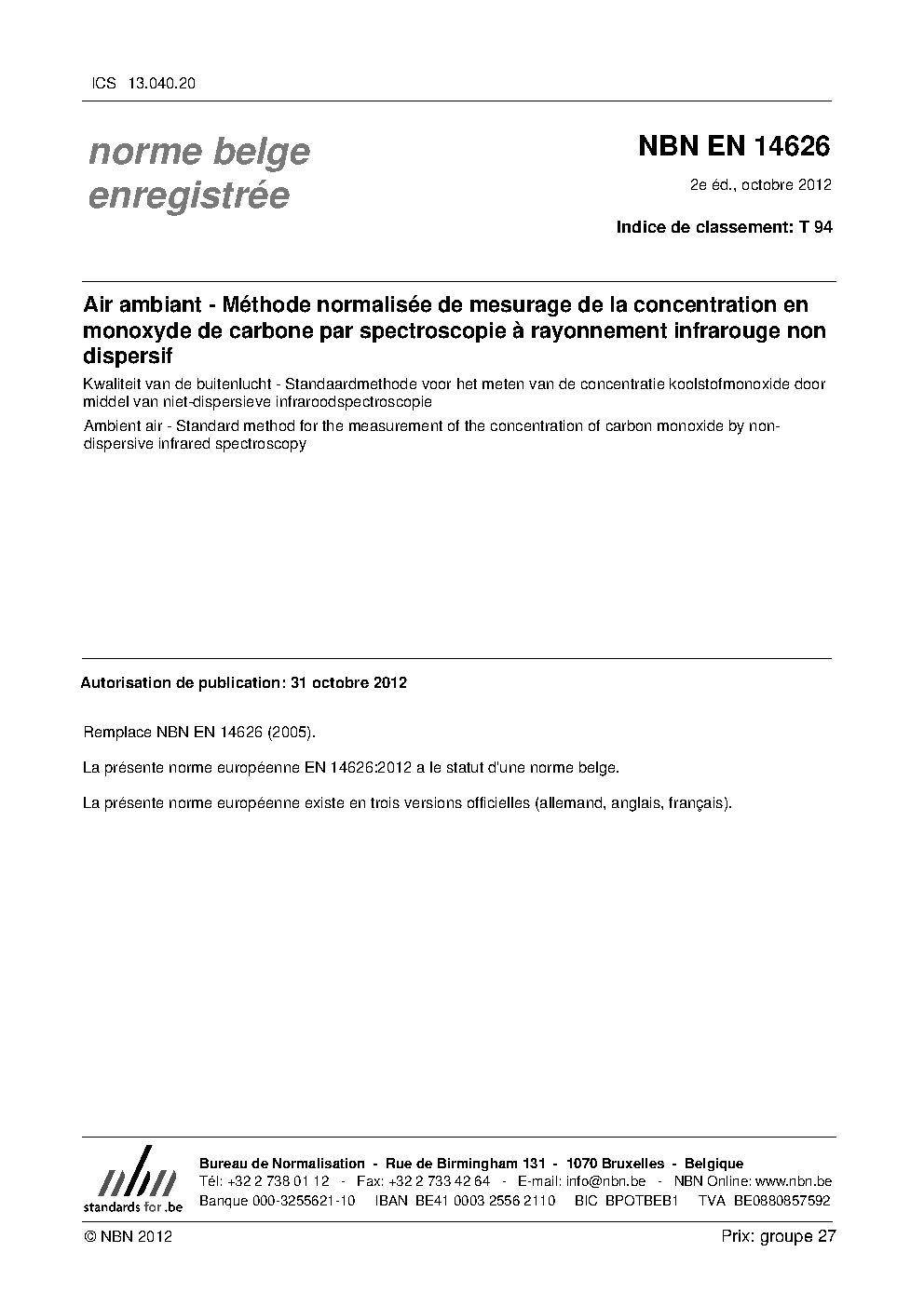 | Publisher | Bureau de Normalisation Belge (NBN) |