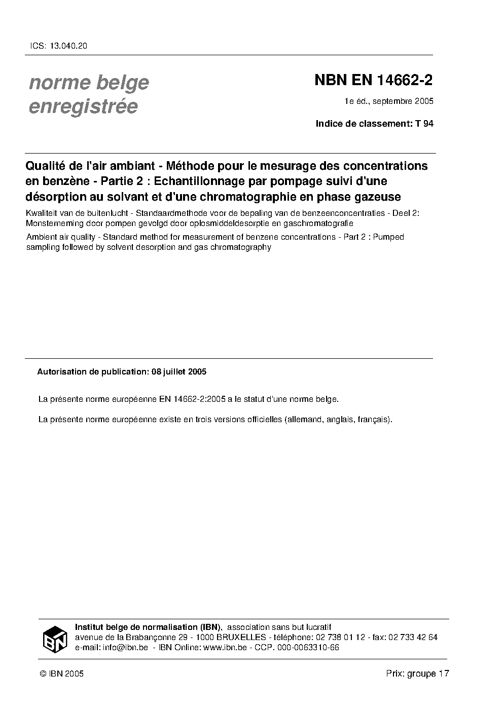 | Publisher | Bureau de Normalisation Belge (NBN) |