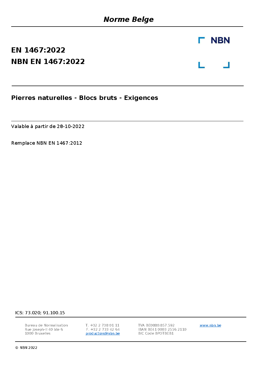 | Publisher | Bureau de Normalisation Belge (NBN) |