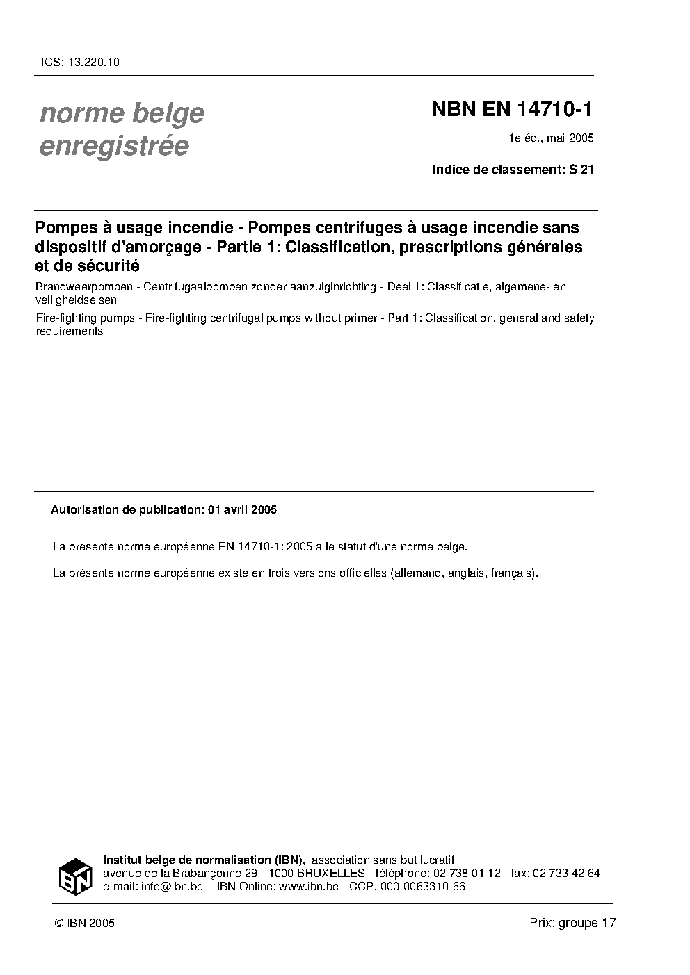 | Publisher | Bureau de Normalisation Belge (NBN) |