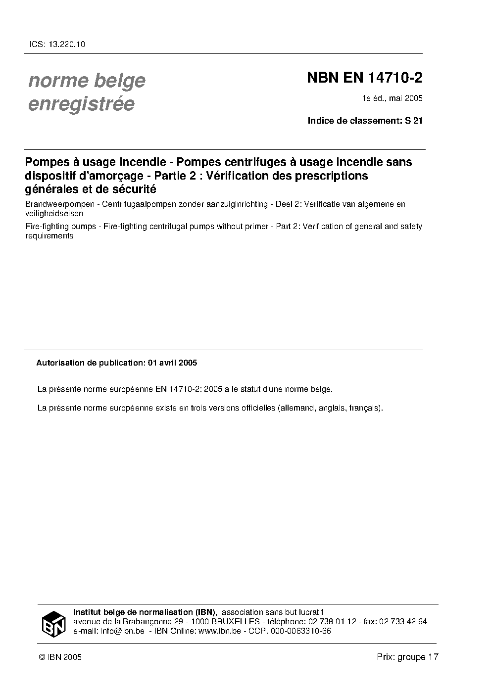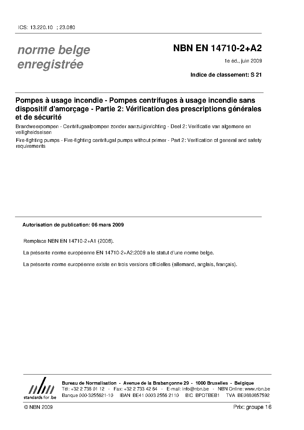 | Publisher | Bureau de Normalisation Belge (NBN) |