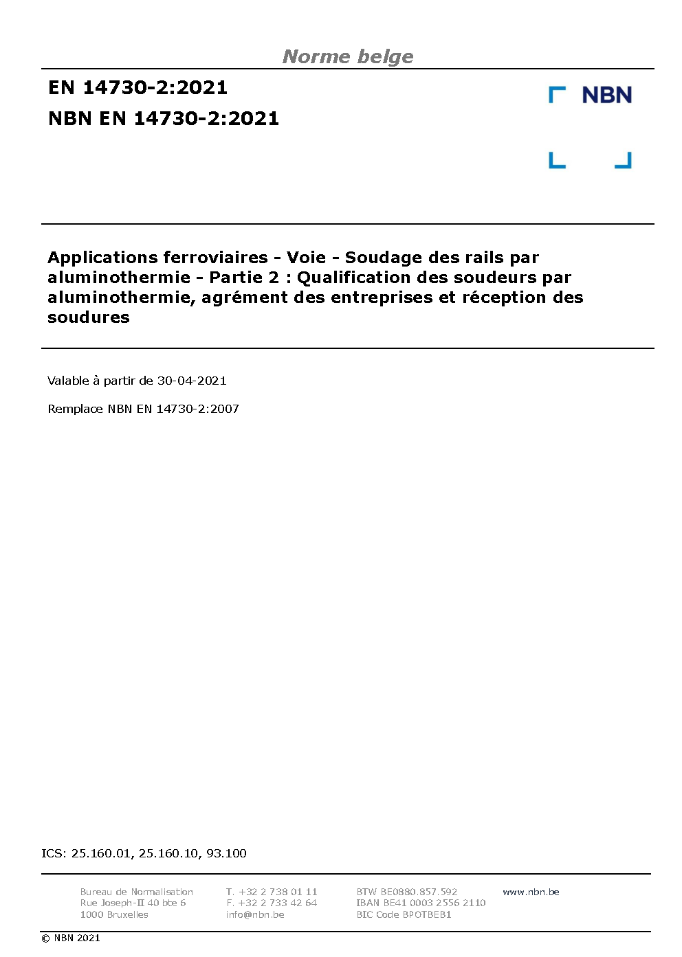 | Publisher | Bureau de Normalisation Belge (NBN) |