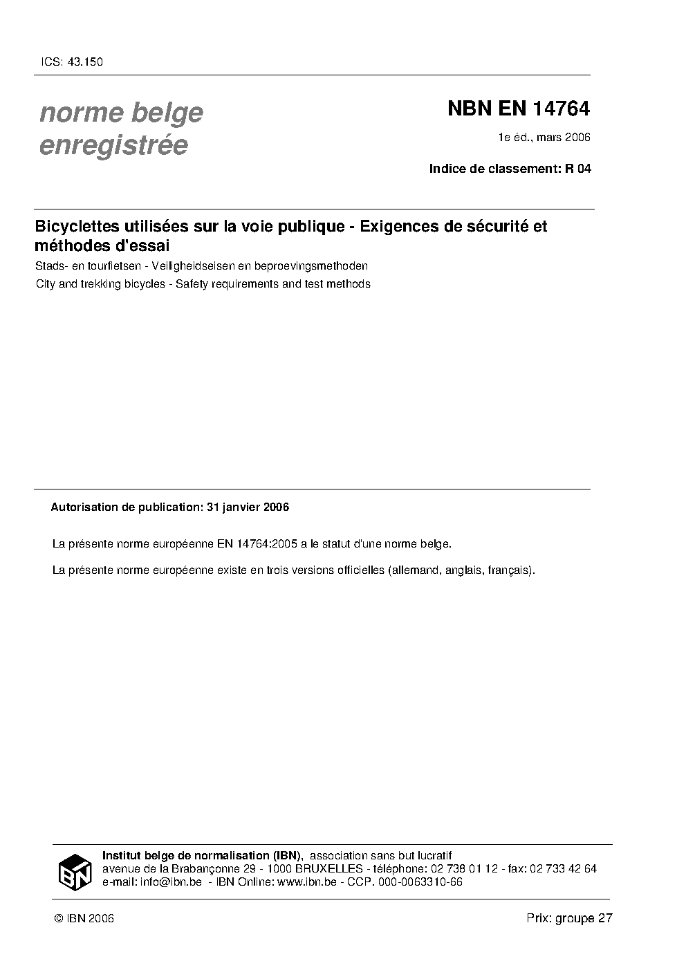 | Publisher | Bureau de Normalisation Belge (NBN) |