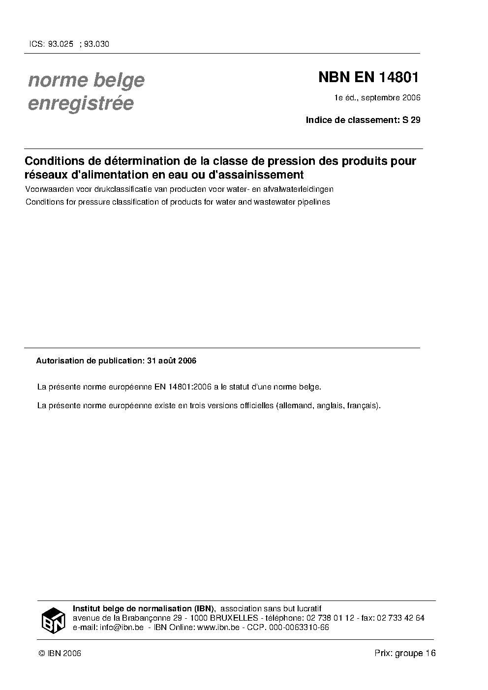 | Publisher | Bureau de Normalisation Belge (NBN) |