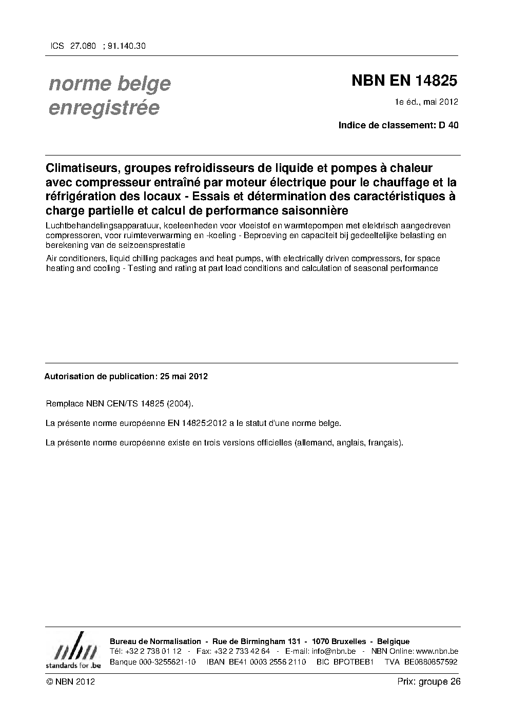 | Publisher | Bureau de Normalisation Belge (NBN) |