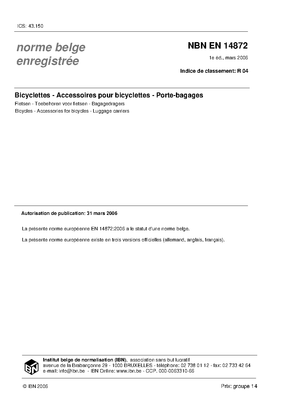 | Publisher | Bureau de Normalisation Belge (NBN) |