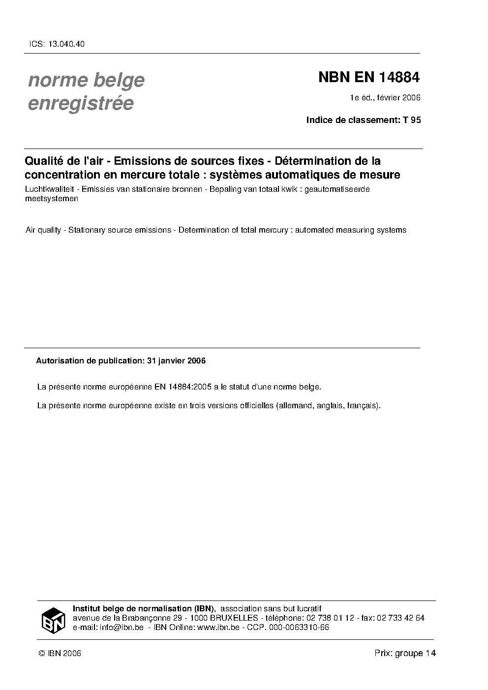 | Publisher | Bureau de Normalisation Belge (NBN) |