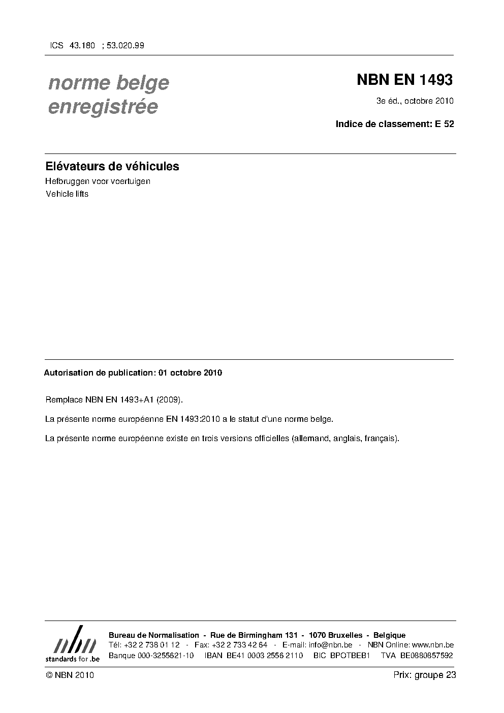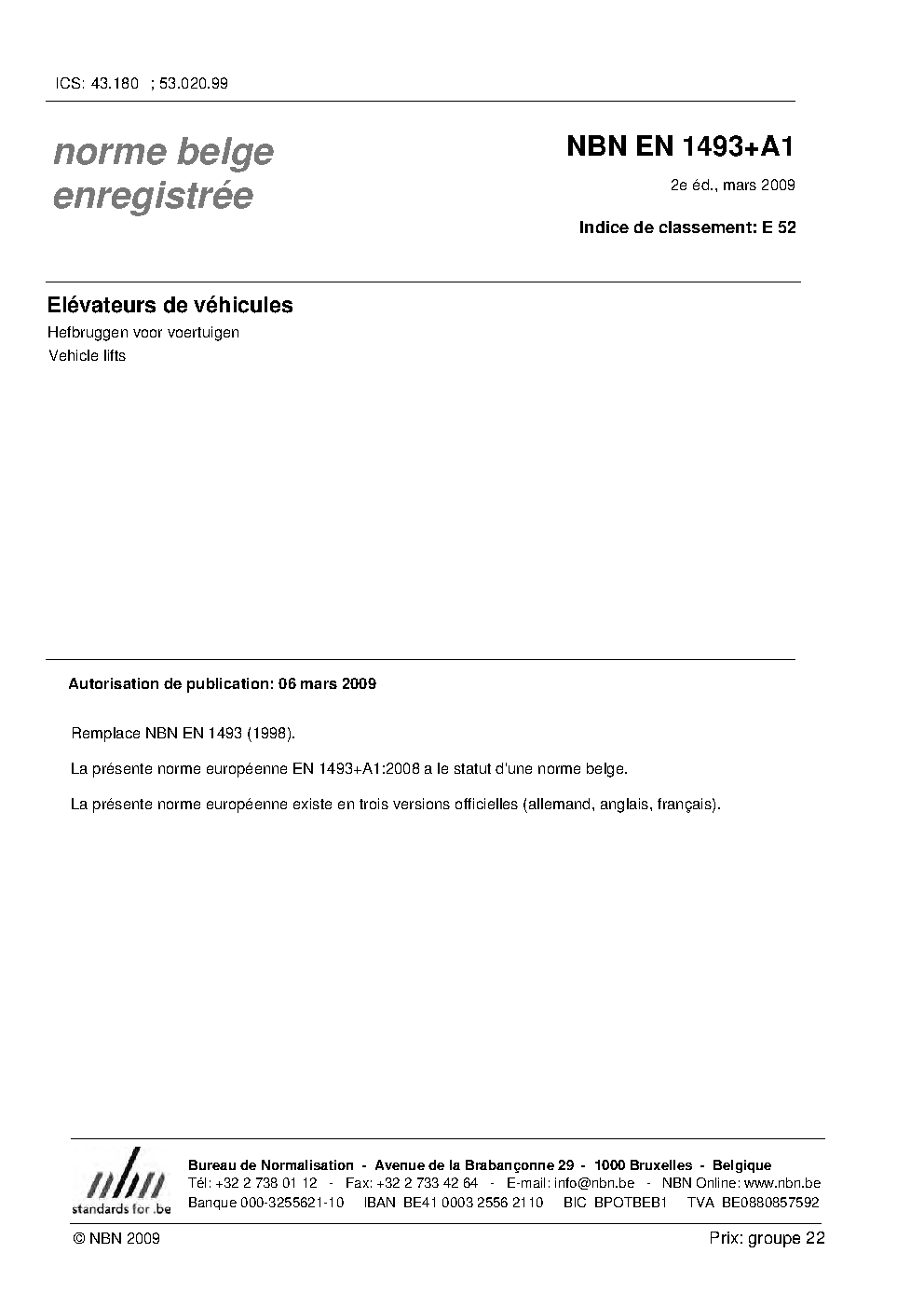 | Publisher | Bureau de Normalisation Belge (NBN) |