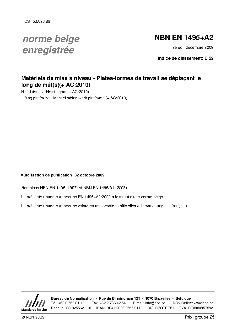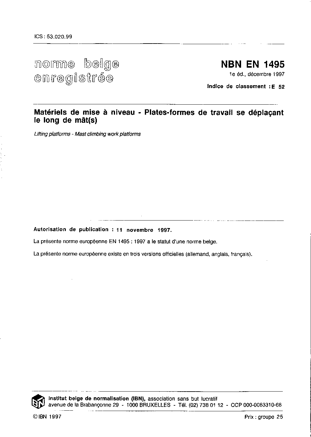 | Publisher | Bureau de Normalisation Belge (NBN) |