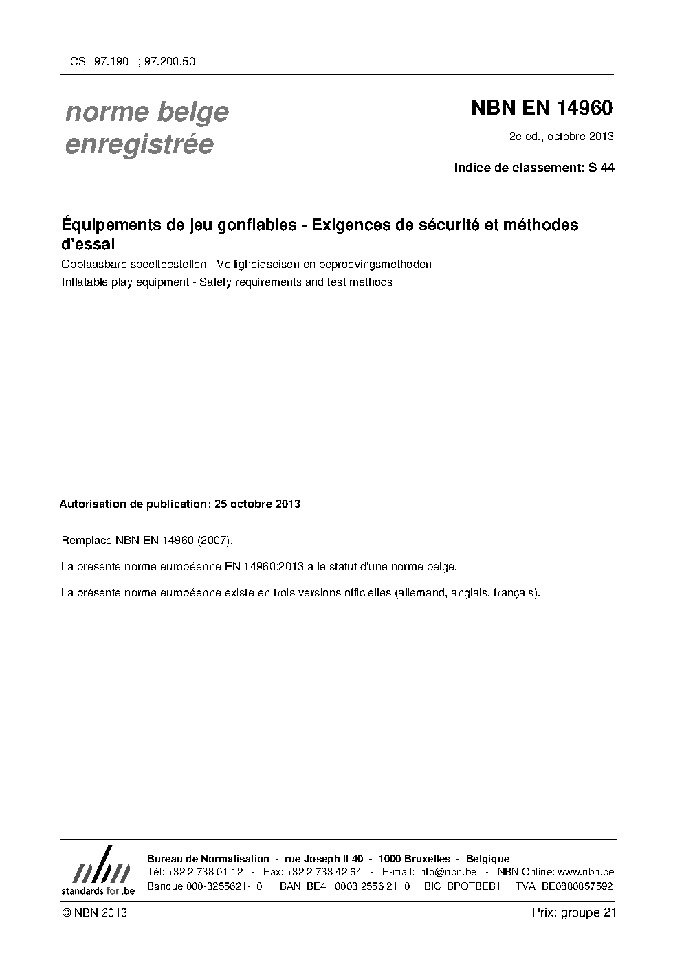 | Publisher | Bureau de Normalisation Belge (NBN) |