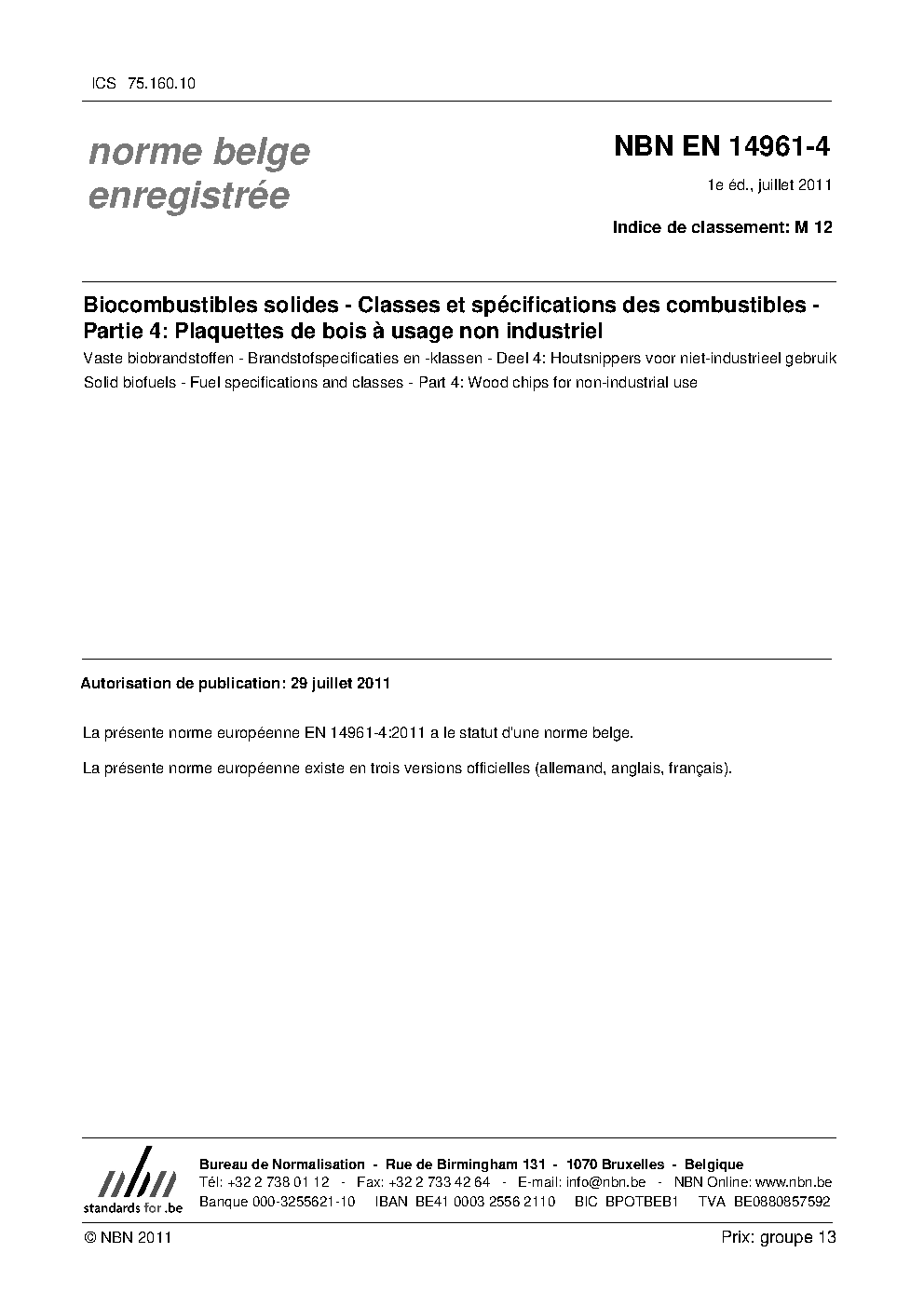 NBN EN 14961-4:2011