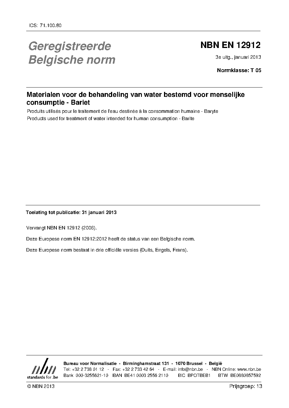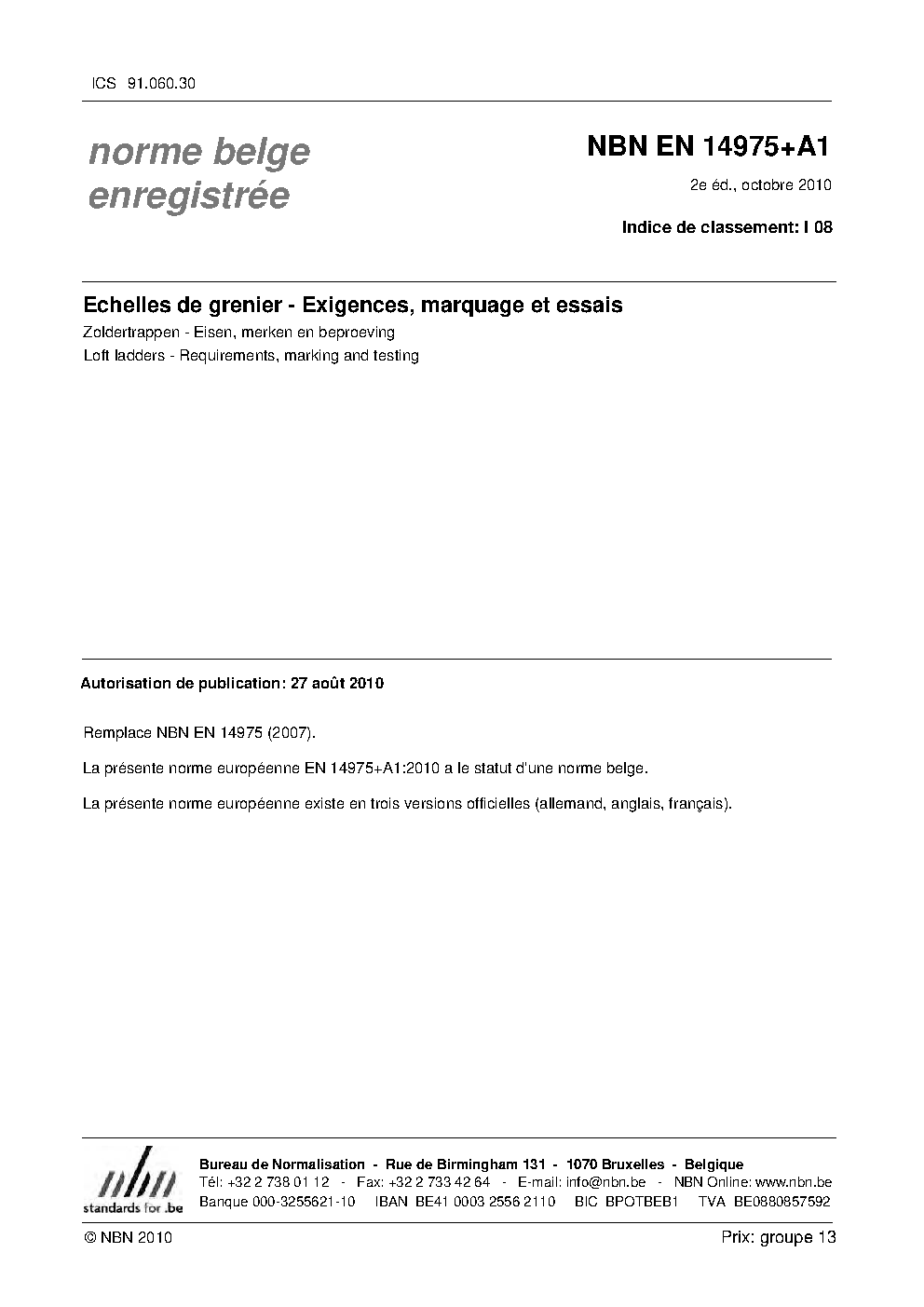 | Publisher | Bureau de Normalisation Belge (NBN) |