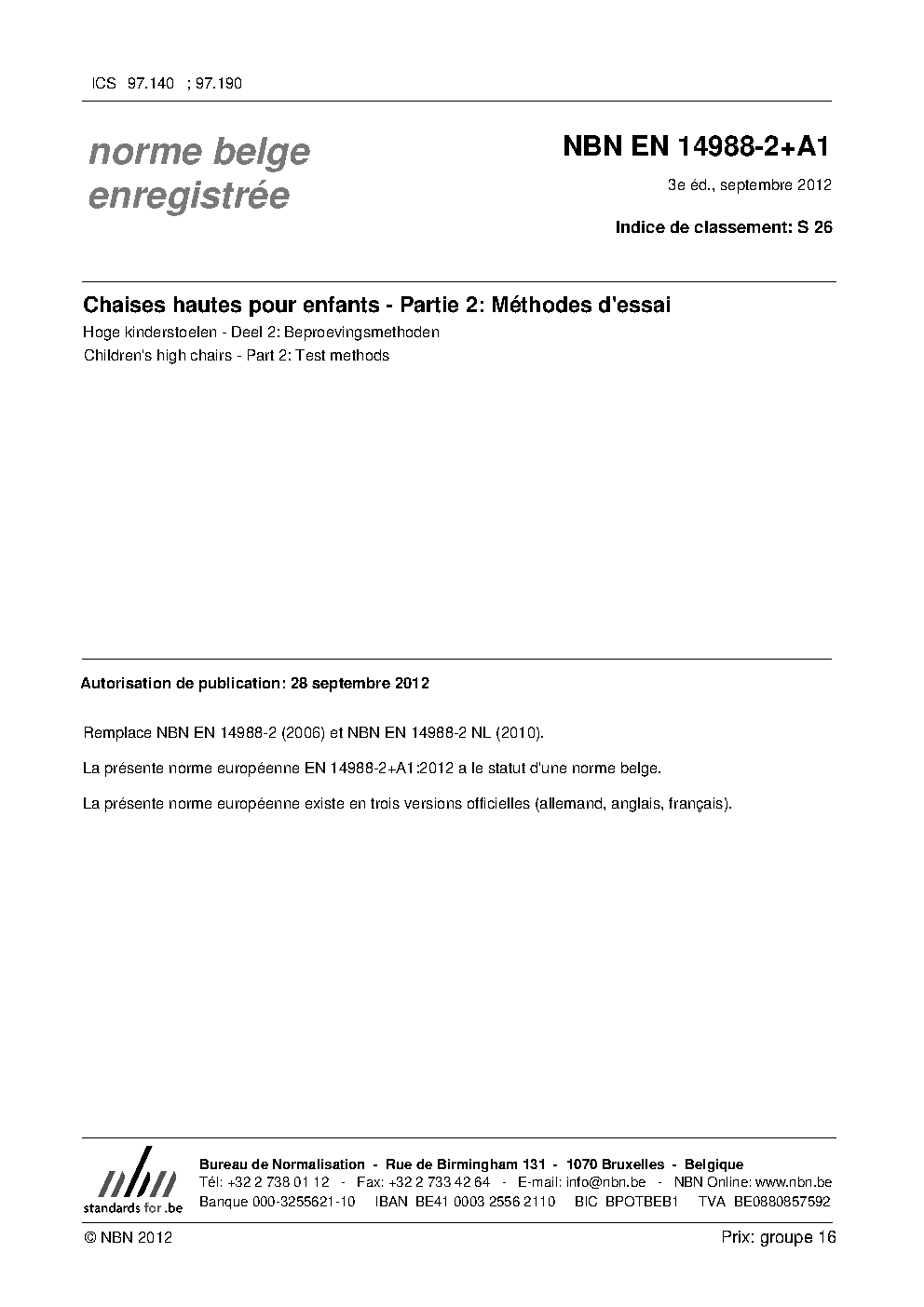 | Publisher | Bureau de Normalisation Belge (NBN) |