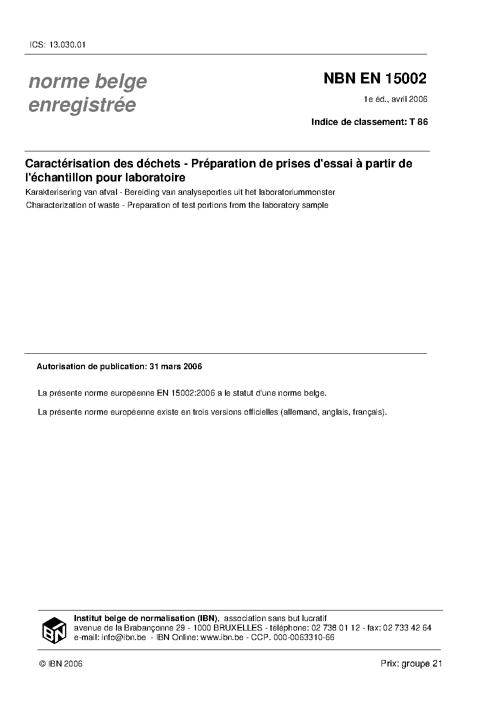 | Publisher | Bureau de Normalisation Belge (NBN) |