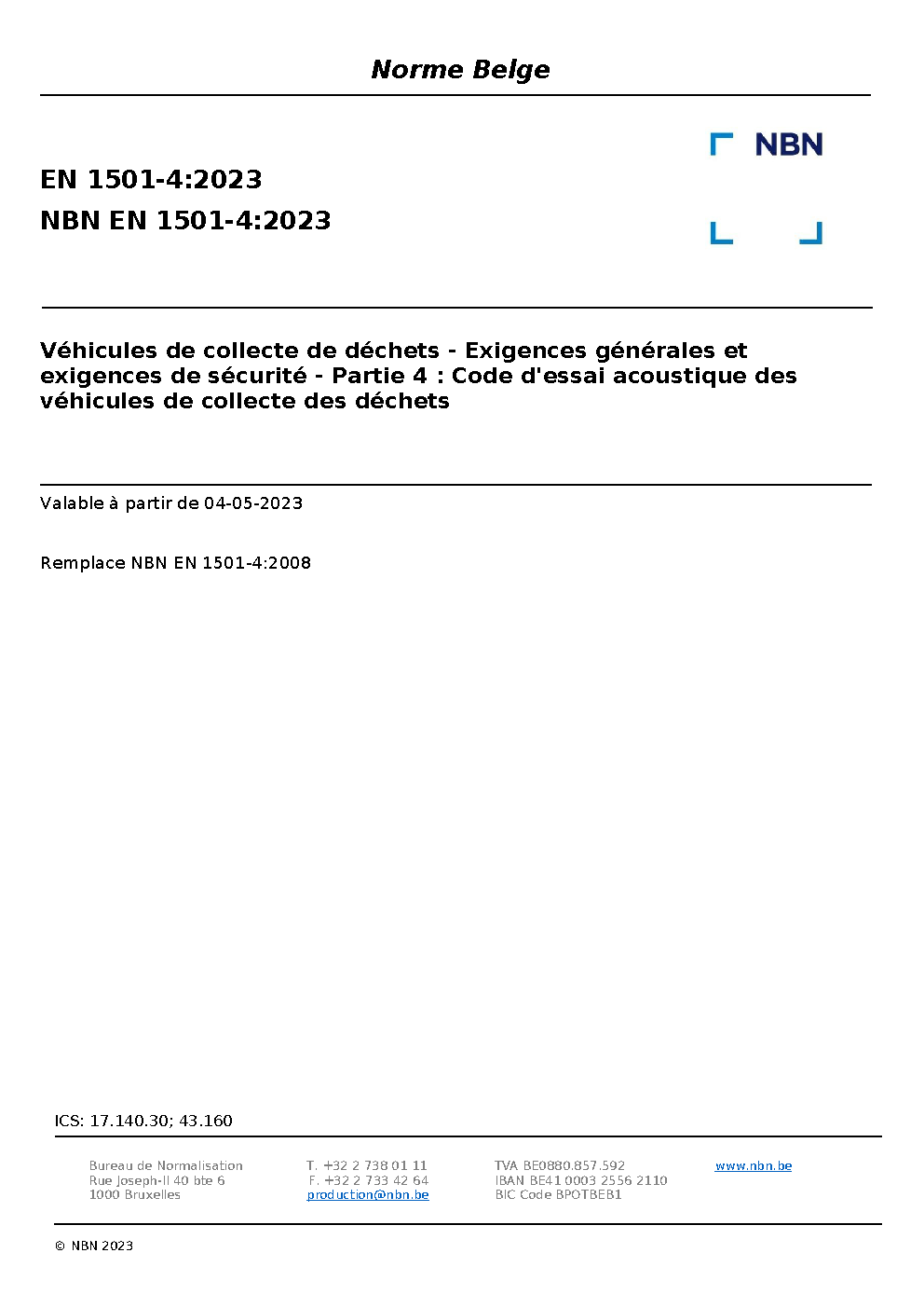 This document provides all of the information required in order to perform efficiently, and in standardized conditions, the determination, the declaration and the verification of noise emission values of refuse collection vehicles.