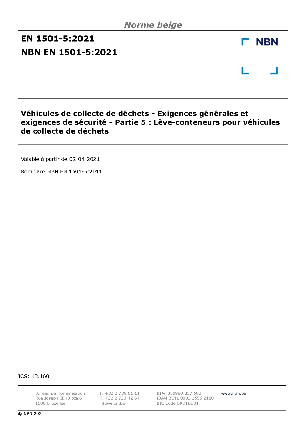 | Publisher | Bureau de Normalisation Belge (NBN) |