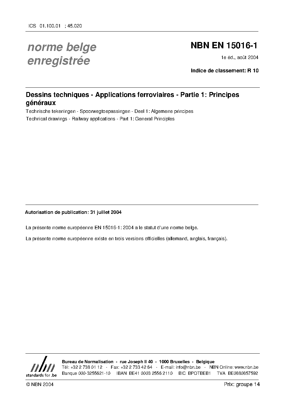 | Publisher | Bureau de Normalisation Belge (NBN) |