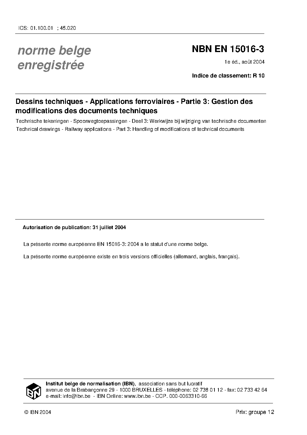 | Publisher | Bureau de Normalisation Belge (NBN) |