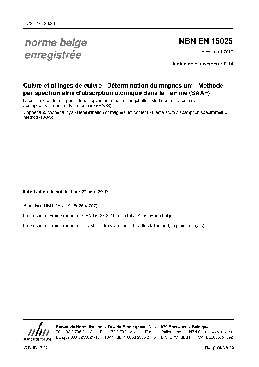 | Publisher | Bureau de Normalisation Belge (NBN) |