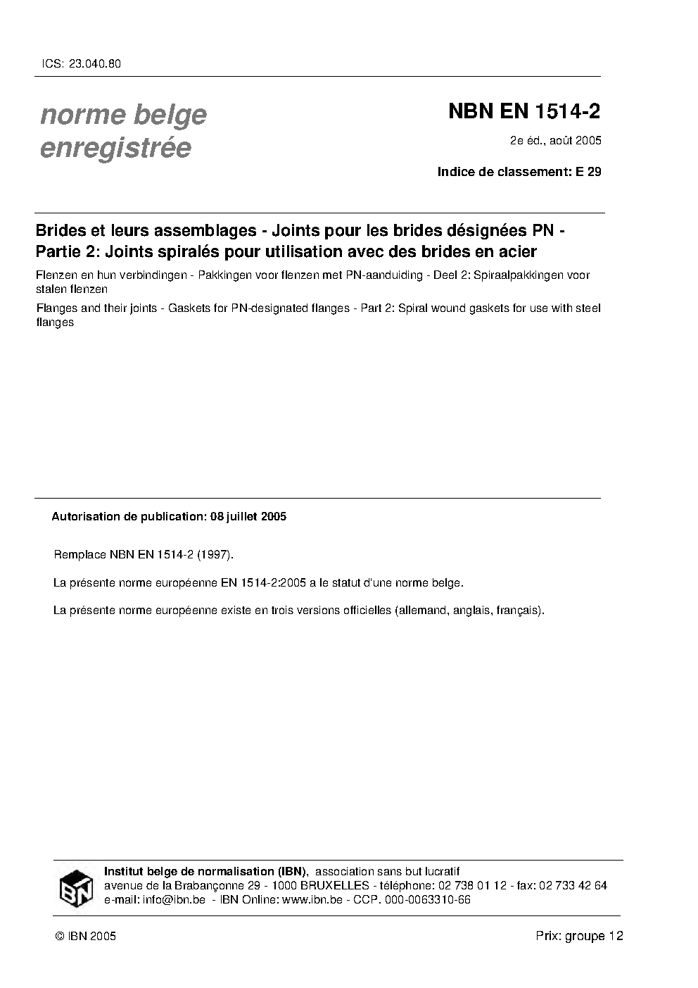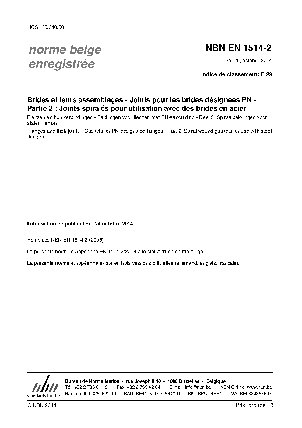 | Publisher | Bureau de Normalisation Belge (NBN) |