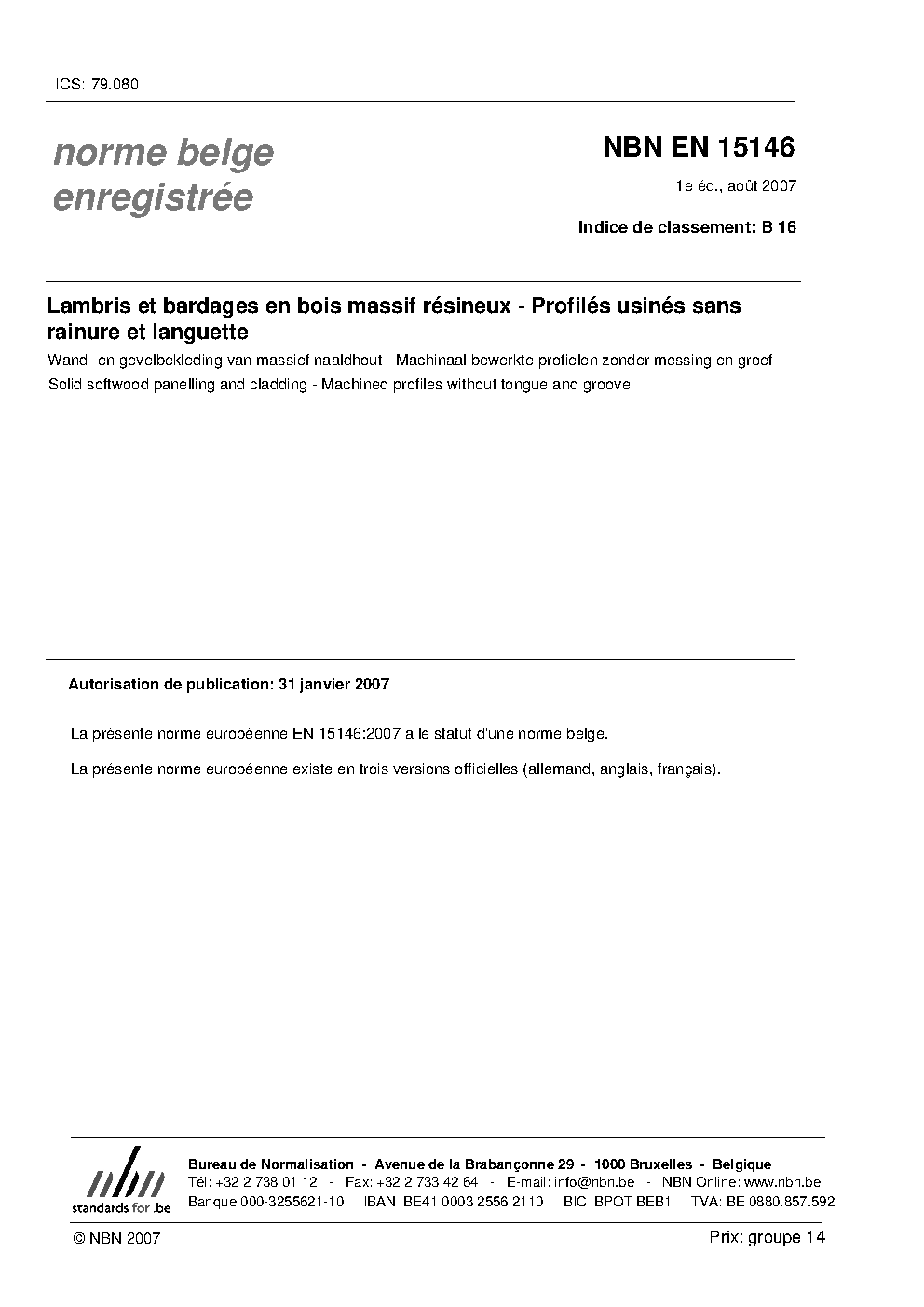 | Publisher | Bureau de Normalisation Belge (NBN) |